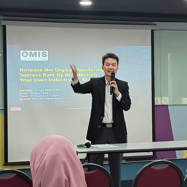 Penang, Malaysia – On Wednesday, 29 May 2024, from 10:00 AM to 12:30 PM, OMIS Consulting and TAR UMT Penang Branch co-hosted a crucial event aimed at helping organizations fully utilize funding supports provided by HRD Corp and NCER. The focus was on driving digital transformation and achieving Environmental, Social, and Governance (ESG) goals. The event took place at the Co-Working Space on the 3rd floor of Block A, TARUMT Penang Branch.